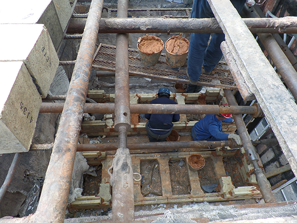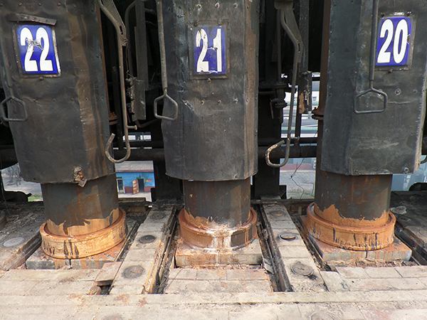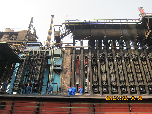公司在2013年7月—2013年11月(第二期)采用俄罗斯热态维修专利技术对1#、2#焦炉30个炭化室(6火道)揭顶局部热态维修。并将对应的蓄热室进行了热态维修,消除了蓄热室阻力大和窜漏的现象。